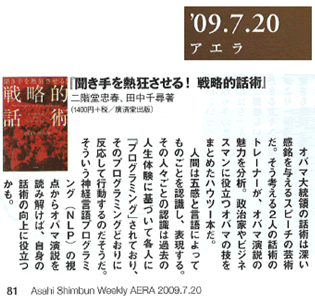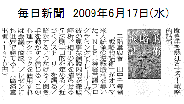 ◆日本で唯一のNLPマスタートレーナーアソシエイト(二階堂忠春) と現役アナウンサー兼NLPトレーナー(ブレスユー代表 田中千尋)の共著による「戦略的話術」 が各メディアで取り上げられました。